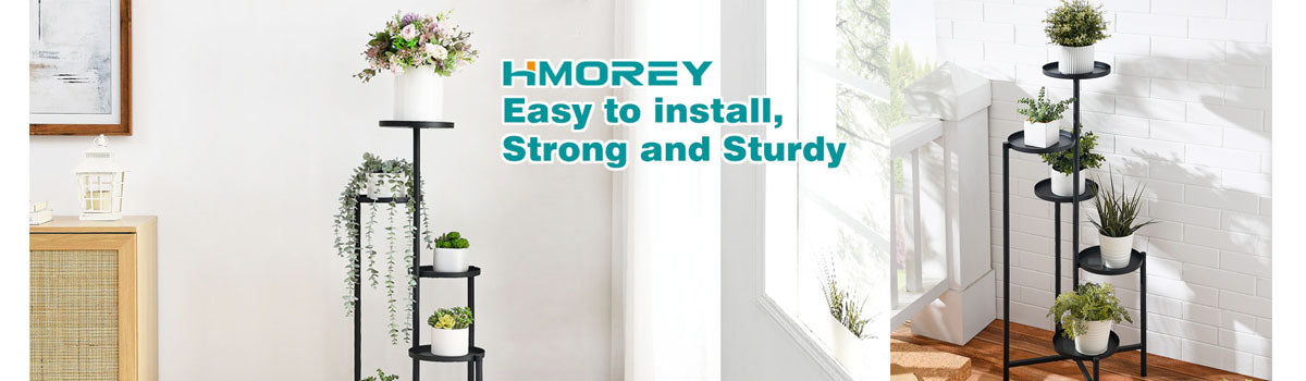 Hmorey 4-Tier Flower Plant Pot Shelf Stand Display Ladder Garden Rack Step Style Metal